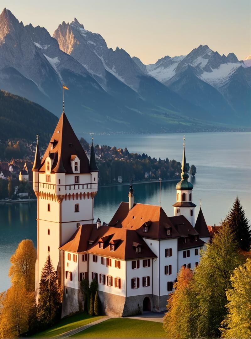 Schloss Oberhofen, Alpenpanorama, Schweiz