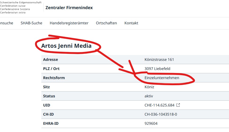 Das sagt ChatGPT zum Thema Einzelfirma „Artos Jenni Media“